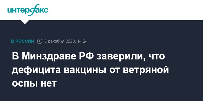 В Минздраве РФ заверили, что дефицита вакцины от ветряной оспы нет