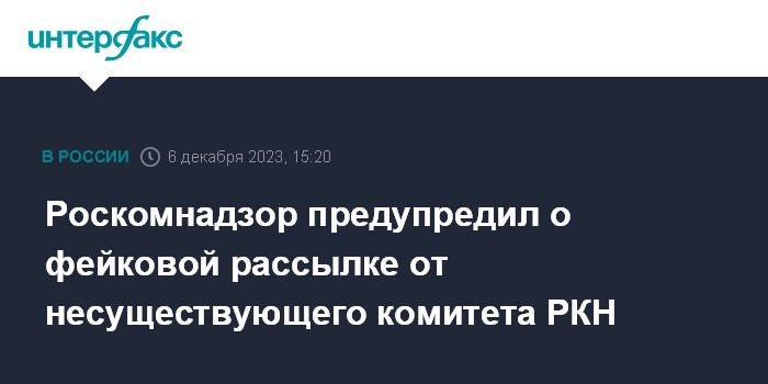 Москва. 6 декабря. INTERFAX.RU - Роскомнадзор (РКН) предупредил о мошеннической рассылке фальшивых писем от имени якобы существующего при нем комитета.