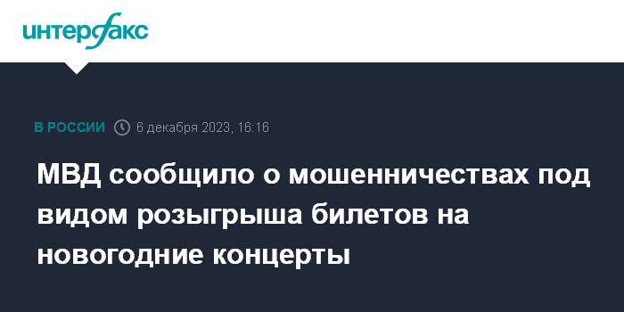 МВД сообщило о мошенничествах под видом розыгрыша билетов на новогодние концерты