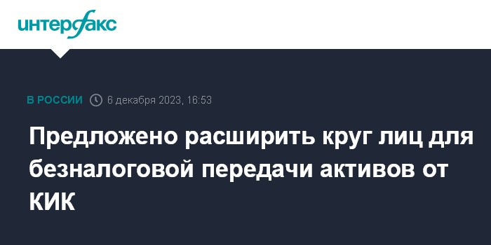 Предложено расширить круг лиц для безналоговой передачи активов от КИК