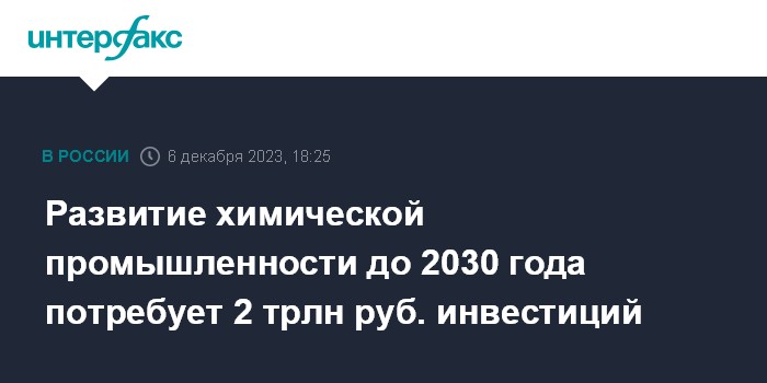 Развитие химической промышленности до 2030 года потребует 2 трлн руб. инвестиций