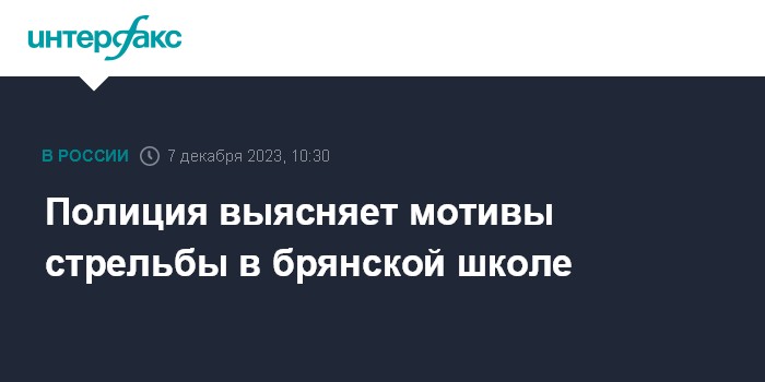 Москва. 7 декабря. INTERFAX.RU - В Брянске полиция устанавливает мотивы и обстоятельства стрельбы в гимназии № 5, где пострадали три человека и стрелявшая покончила с собой, сообщили в пресс-службе регионального управления МВД .