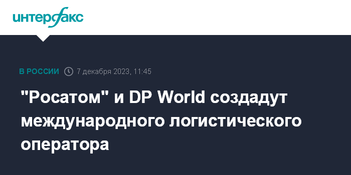 "Сегодня мы договорились с компанией DP World об объединении нашего опыта, компетенций и инфраструктурных возможностей для создания глобального логистического оператора, который будет способствовать повышению прозрачности и доступности транспортно-логистических услуг прежде всего для развивающихся стран Евразии, Ближнего Востока, Африки и Южной Америки", - приводятся в сообщении слова главы "Росатома" Алексея Лихачева.
