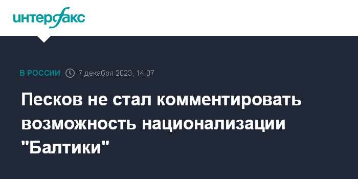 Москва. 7 декабря. INTERFAX.RU - В Кремле не комментируют возможность национализации пивоваренной компании "Балтика".