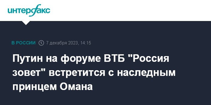 Путин на форуме ВТБ "Россия зовет" встретится с наследным принцем Омана