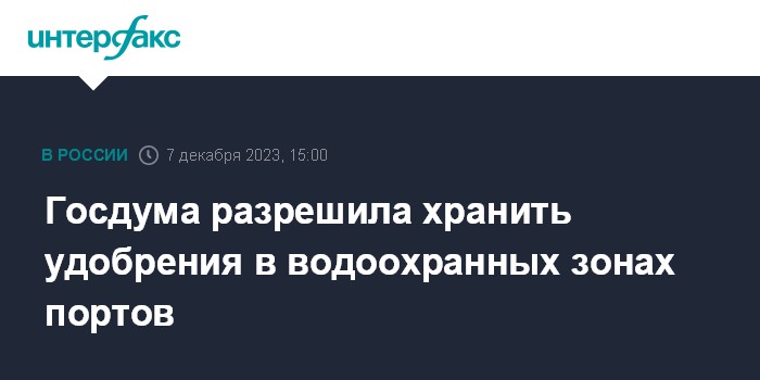 Госдума разрешила хранить удобрения в водоохранных зонах портов