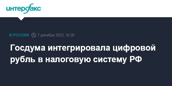 Госдума интегрировала цифровой рубль в налоговую систему РФ