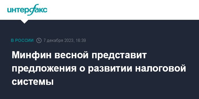Минфин весной представит предложения о развитии налоговой системы