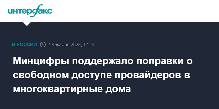 Минцифры поддержало поправки о свободном доступе провайдеров в многоквартирные дома