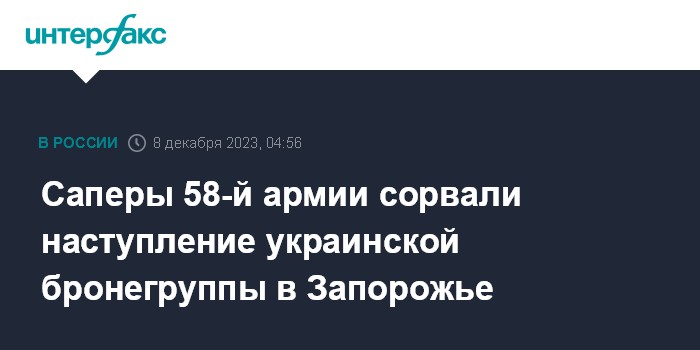 Саперы 58-й армии сорвали наступление украинской бронегруппы в Запорожье