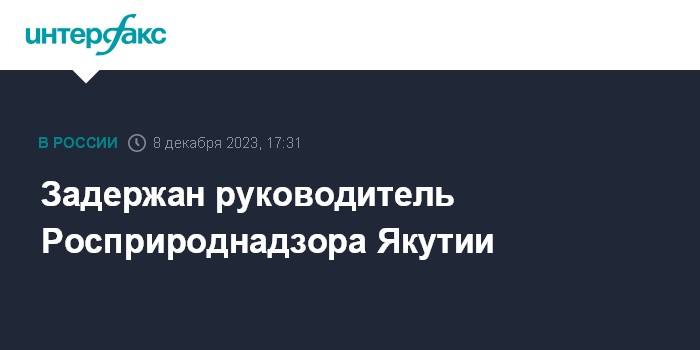 "Сотрудники Управления экономической безопасности и противодействия коррупции МВД по Республике Саха (Якутия) задержали руководителя регионального управления Федеральной службы по надзору в сфере природопользования. Он подозревается в злоупотреблении должностными полномочиями", - сказала Волк журналистам в пятницу, не уточняя имени задержанного.