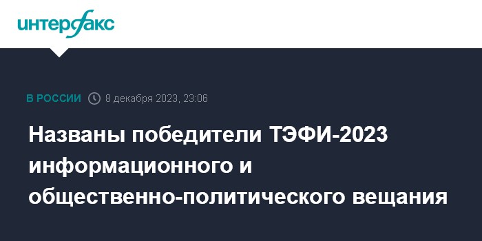 Названы победители ТЭФИ-2023 информационного и общественно-политического вещания