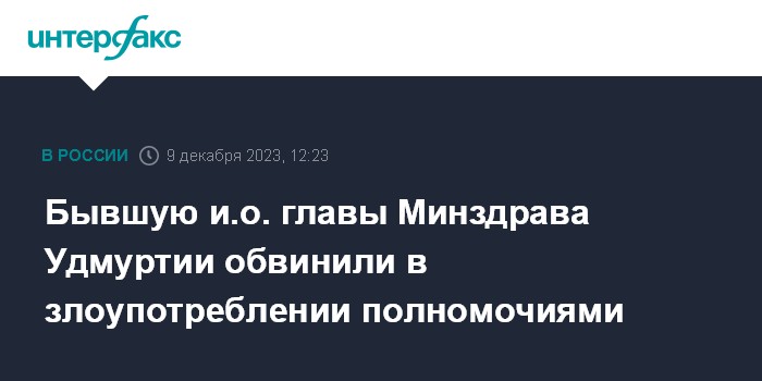 Бывшую и.о. главы Минздрава Удмуртии обвинили в злоупотреблении полномочиями
