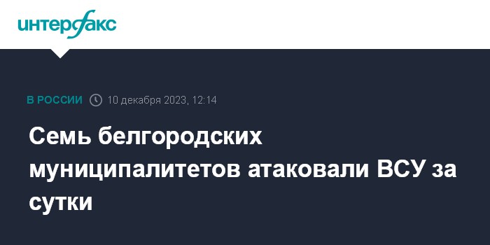 Москва. 10 декабря. INTERFAX.RU - Губернатор Белгородской области Вячеслав Гладков сообщил об ударах, нанесенных по территории региона со стороны Украины за минувшие сутки.