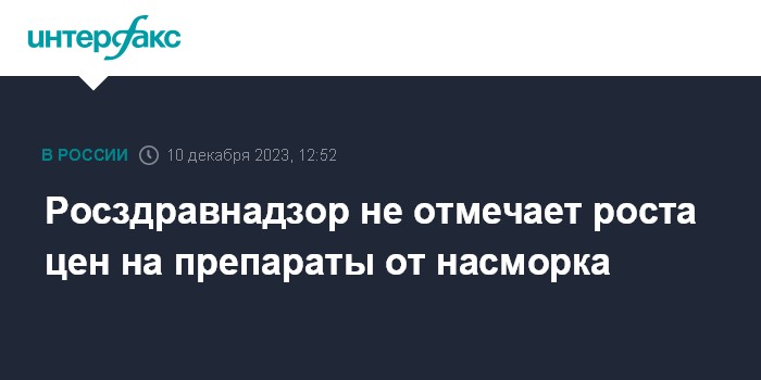 Москва. 10 декабря. INTERFAX.RU - Значимого роста цен на препараты от насморка из перечня жизненно необходимых и важнейших (ЖНВЛП) не отмечается, сообщили в Росздравнадзоре.