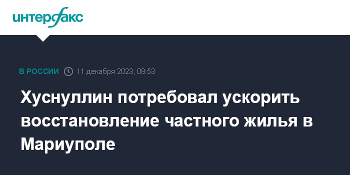 Москва. 11 декабря. INTERFAX.RU - Темпы восстановления индивидуальных жилых домов (ИЖС) в Мариуполе необходимо ускорить, написал в Telegram вице-премьер Марат Хуснуллин после поездки в ДНР.