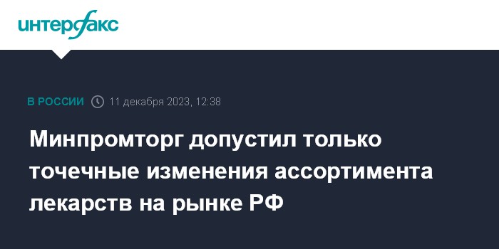 Минпромторг допустил только точечные изменения ассортимента лекарств на рынке РФ