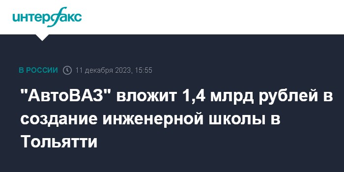 "АвтоВАЗ" вложит 1,4 млрд рублей в создание инженерной школы в Тольятти
