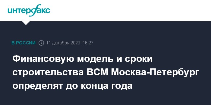 Финансовую модель и сроки строительства ВСМ Москва-Петербург определят до конца года