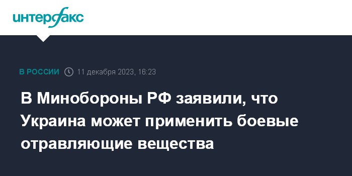 В Минобороны РФ заявили, что Украина может применить боевые отравляющие вещества