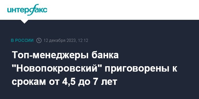 Топ-менеджеры банка "Новопокровский" приговорены к срокам от 4,5 до 7 лет