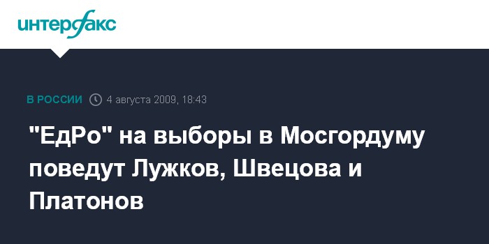 "ЕдРо" на выборы в Мосгордуму поведут Лужков, Швецова и Платонов