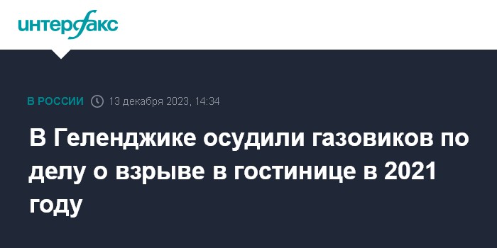 Москва. 13 декабря. INTERFAX.RU - Геленджикский городской суд вынес обвинительный приговор трем бывшим сотрудникам филиала АО "Газпром газораспределение Краснодар" по делу о взрыве газа в гостинице в Геленджике летом 2021 года, сообщает объединенная пресс-служба судов Краснодарского края.