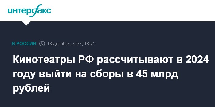 Кинотеатры РФ рассчитывают в 2024 году выйти на сборы в 45 млрд рублей