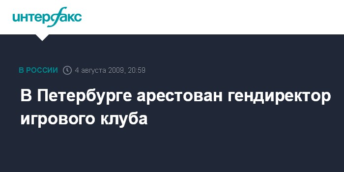 Санкт-Петербург. 4 августа. INTERFAX.RU - Генеральный директор одного из игровых клубов Петербурга арестован по делу о незаконной организации азартных игр, сообщает сайт прокуратуры города.