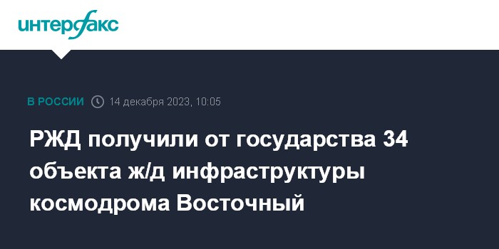 РЖД получили от государства 34 объекта ж/д инфраструктуры космодрома Восточный