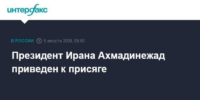 Москва. 5 августа. INTERFAX.RU - Президент Ирана Махмуд Ахмадинежад в среду приведен к присяге в парламенте в Тегеране, передают западные СМИ.
