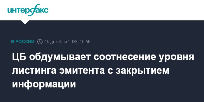 ЦБ обдумывает соотнесение уровня листинга эмитента с закрытием информации