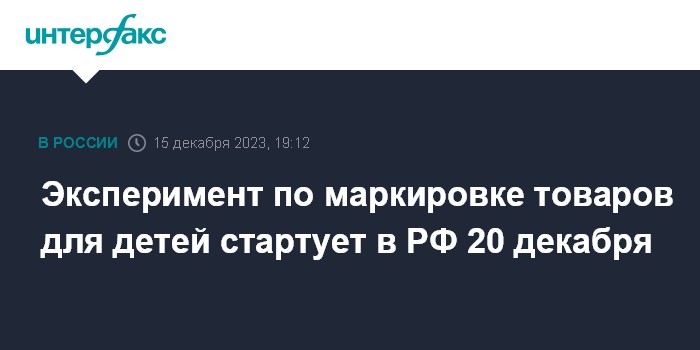 Москва. 15 декабря. INTERFAX.RU - Эксперимент по маркировке отдельных видов товаров для детей пройдет в России с 20 декабря 2023 года по 1 декабря 2024 года. Соответствующее постановление подписано премьер-министром РФ Михаилом Мишустиным.