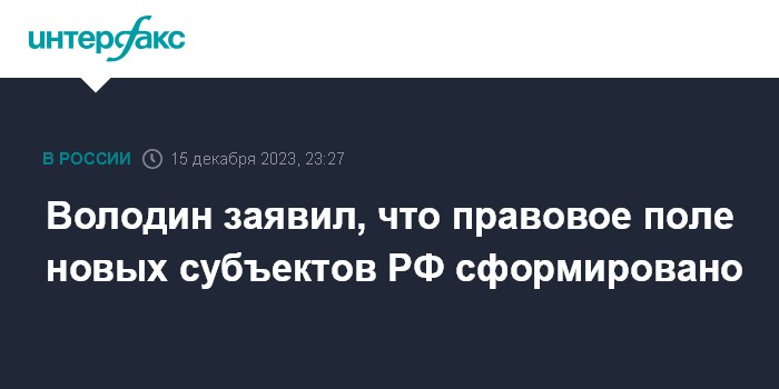 Володин заявил, что правовое поле новых субъектов РФ сформировано