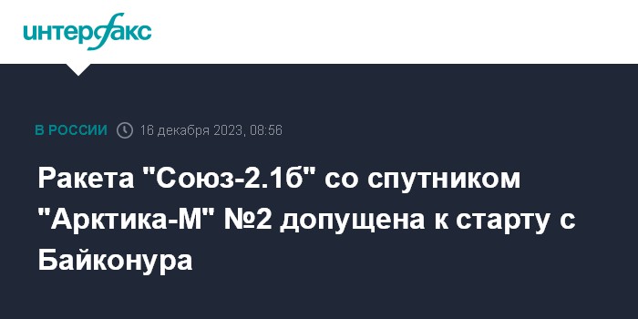 Ракета "Союз-2.1б" со спутником "Арктика-М" №2 допущена к старту с Байконура