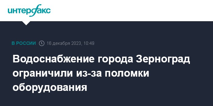Водоснабжение города Зерноград ограничили из-за поломки оборудования