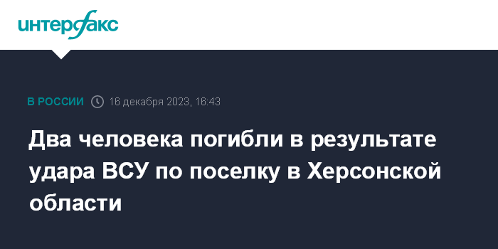 Два человека погибли в результате удара ВСУ по поселку в Херсонской области