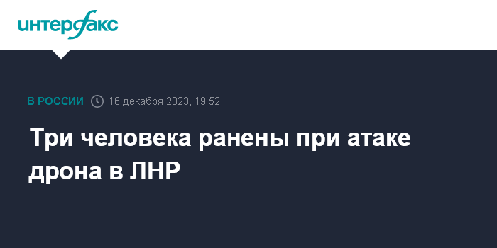 Москва. 16 декабря. INTERFAX.RU - Трое мирных жителей ранены в результате атаки дрона-камикадзе по гражданскому автомобилю в Лисичанске Луганской народной республики, сообщили в правительстве ЛНР.