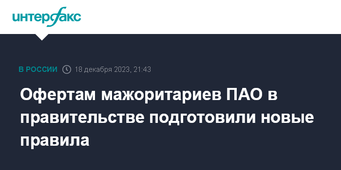 Офертам мажоритариев ПАО в правительстве подготовили новые правила