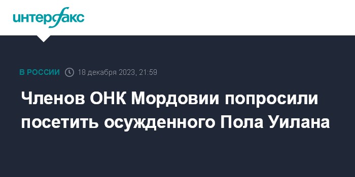 Членов ОНК Мордовии попросили посетить осужденного Пола Уилана
