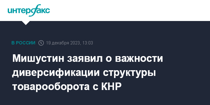 Мишустин заявил о важности диверсификации структуры товарооборота с КНР