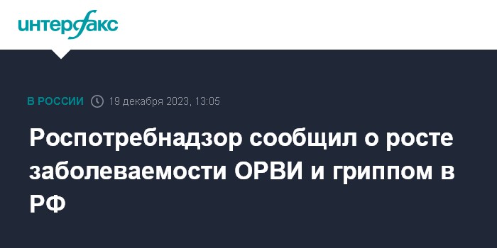 "На 50 неделе 2023 года в России продолжает расти заболеваемость гриппом и ОРВИ. Показатель вырос на 6,5% по сравнению с предыдущей неделей", - говорится в сообщении, опубликованном в телеграм-канале ведомства.