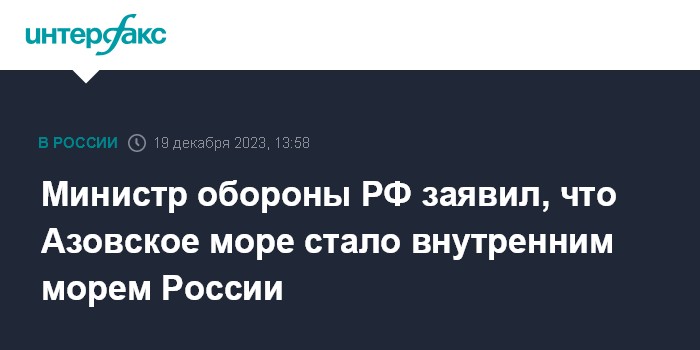 Министр обороны РФ заявил, что Азовское море стало внутренним морем России