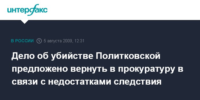 Москва. 5 августа. INTERFAX.RU - Адвокаты семьи журналистки и правозащитницы Анны Политковской попросили суд вернуть прокурору дело о ее убийстве в связи с недостатками следствия, передал корреспондент "Интерфакса".