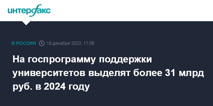 На госпрограмму поддержки университетов выделят более 31 млрд руб. в 2024 году