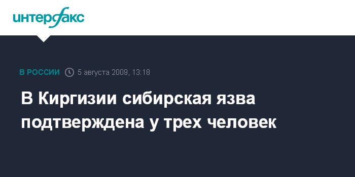 Бишкек. 5 августа. INTERFAX.RU - У троих жителей Аксыйского района Джелал-Абадской области Киргизии (юг страны), госпитализированных накануне с подозрением на инфекцию, подтвержден диагноз "сибирская язва", сообщили в среду "Интерфаксу" в пресс-службе МЧС Киргизии.