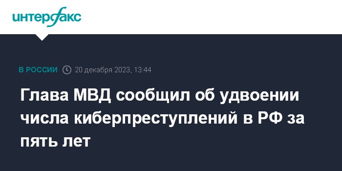 Глава МВД сообщил об удвоении числа киберпреступлений в РФ за пять лет