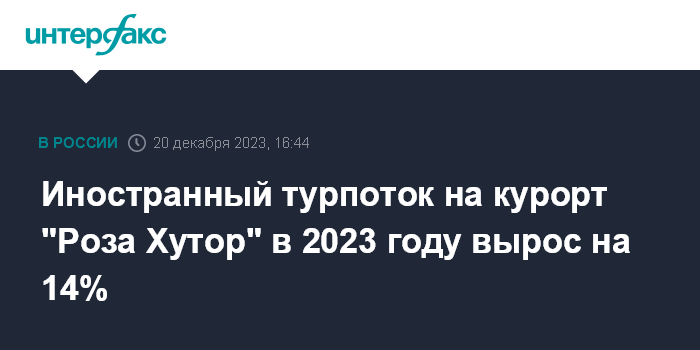 Москва. 20 декабря. INTERFAX.RU - Иностранный турпоток на сочинский курорт "Роза Хутор" в 2023 году увеличился на 14 %, сообщил журналистам заместитель генерального директора курорта Сергей Хворостяный в среду.