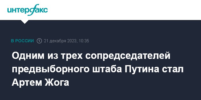 Одним из трех сопредседателей предвыборного штаба Путина стал Артем Жога