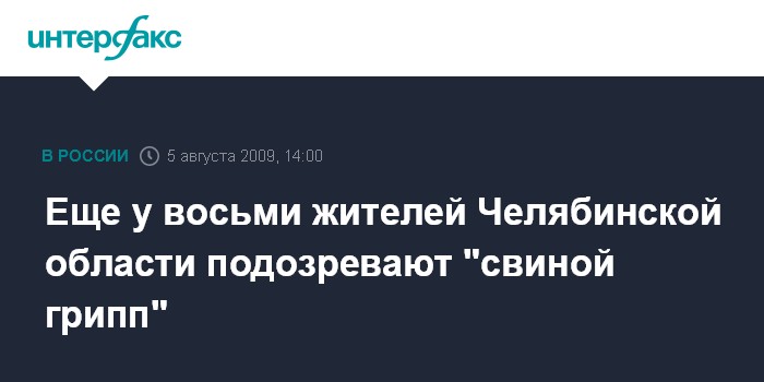 Челябинск. 5 августа. INTERFAX.RU - В Челябинской области, по состоянию на 5 августа, зарегистрировано 17 случаев подозрения на заболевание, вызванное вирусом высокопатогенного гриппа А/H1N1. В том числе зафиксирован один случай в Троицке, один - в Копейске и 15 в Челябинске.